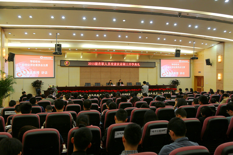 党政办公室、后勤管理处、保卫处、信息中心、图书馆、研究生处等相关职能部门领导,大气科学学院、电子工程学院、软件工程学院、通信工程学院、资源环境学院、管理学院、商学院等在职研究生培养学院院长、书记,以及全体2015级在职农业硕士新生,导师代表和教学管理人员等200余人参加了开学典礼。