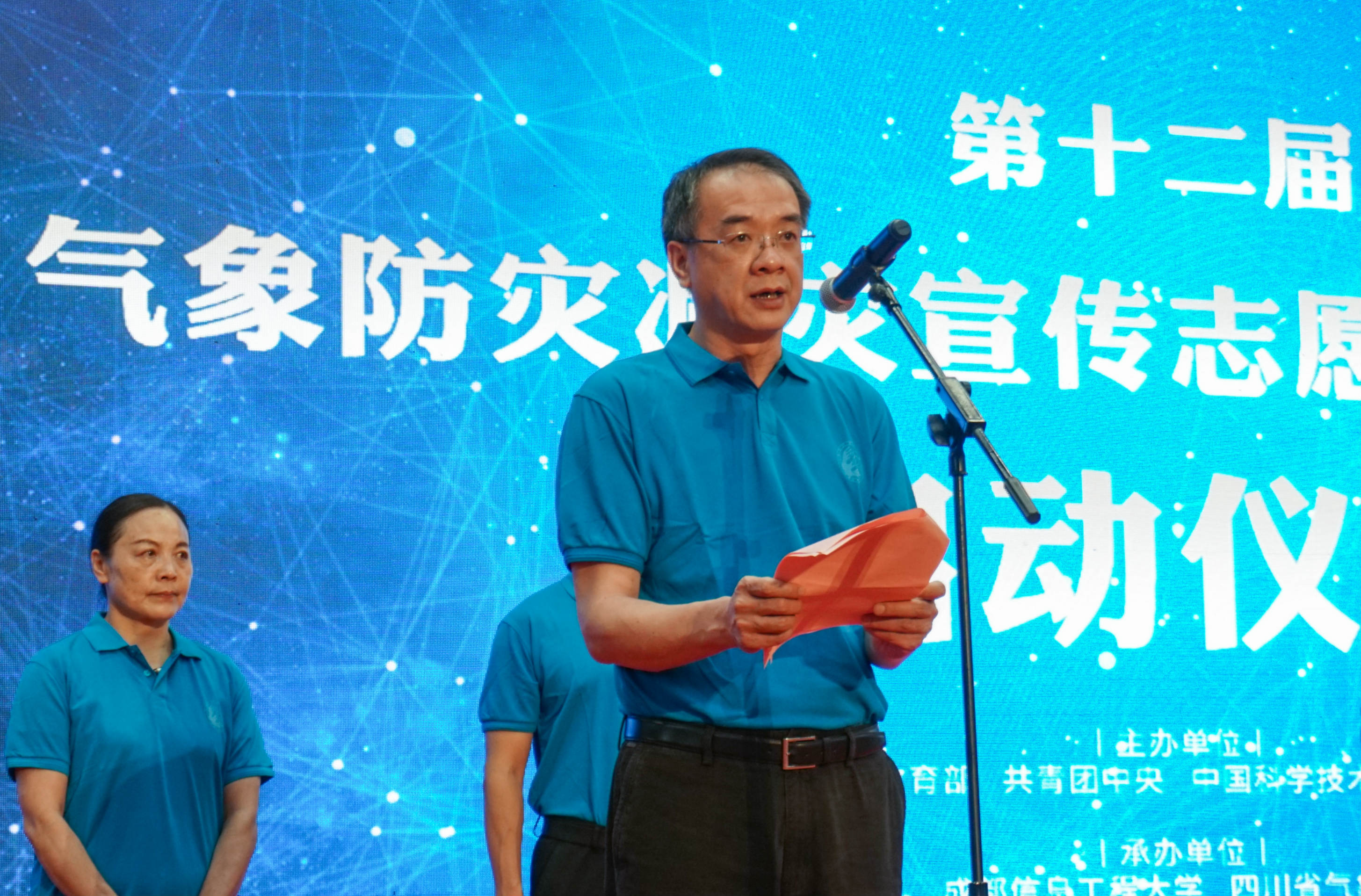 余敏明在致辞中谈到,由我校发起的,融合气象、教育、志愿者、科普等诸多元素的“气象防灾减灾宣传志愿者中国行”气象科普活动已经成为具有代表性和全国影响力的高校志愿者文化品牌活动,成为普及气象防灾减灾知识、提升国民应对气象灾害的意识和能力、提高全民科学素养的有效形式和途径,为推动我国的气象防灾减灾事业发展、促进国民经济和社会事业健康发展提供了有力支撑。他希望同学们以舍我其谁的勇气和昂扬的精神状态,继续书写报效祖国、服务人民、成就自我的人生华章。他表示,成信大一定会全力以赴做好各项服务保障工作,不断加强与各界的协同创新,搭建良好的合作发展平台,努力为国家气象事业发展和气象防灾减灾工作做出更大贡献。