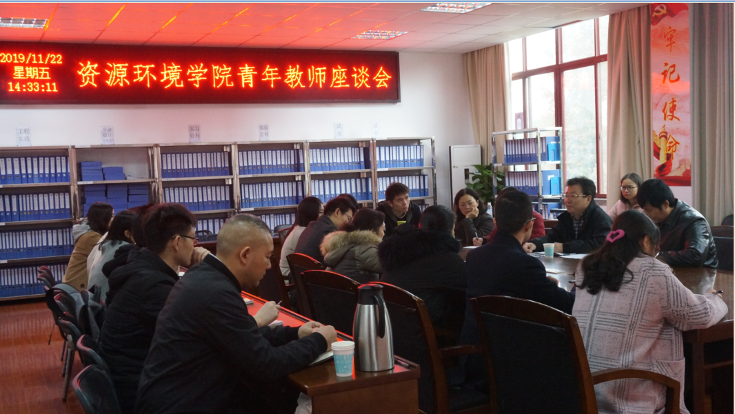 【本网讯】为进一步了解青年教师在工作中的需求,收集教师对学校发展的意见和建议,11月22日下午,学校党委书记周激流在资环楼221会议室与资源环境学院青年教师进行了座谈。资源环境学院相关负责人和青年教师代表参加了座谈会。