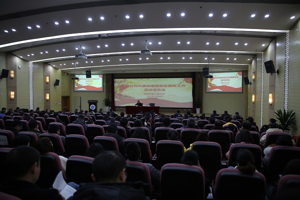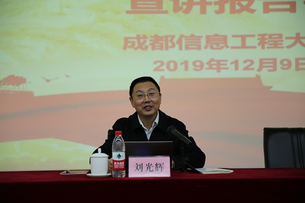 【本网讯】12月9日上午,高校党风廉政建设和反腐败工作宣讲报告会在我校国际会议厅举行。中共四川省纪委常委刘光辉作主题报告。