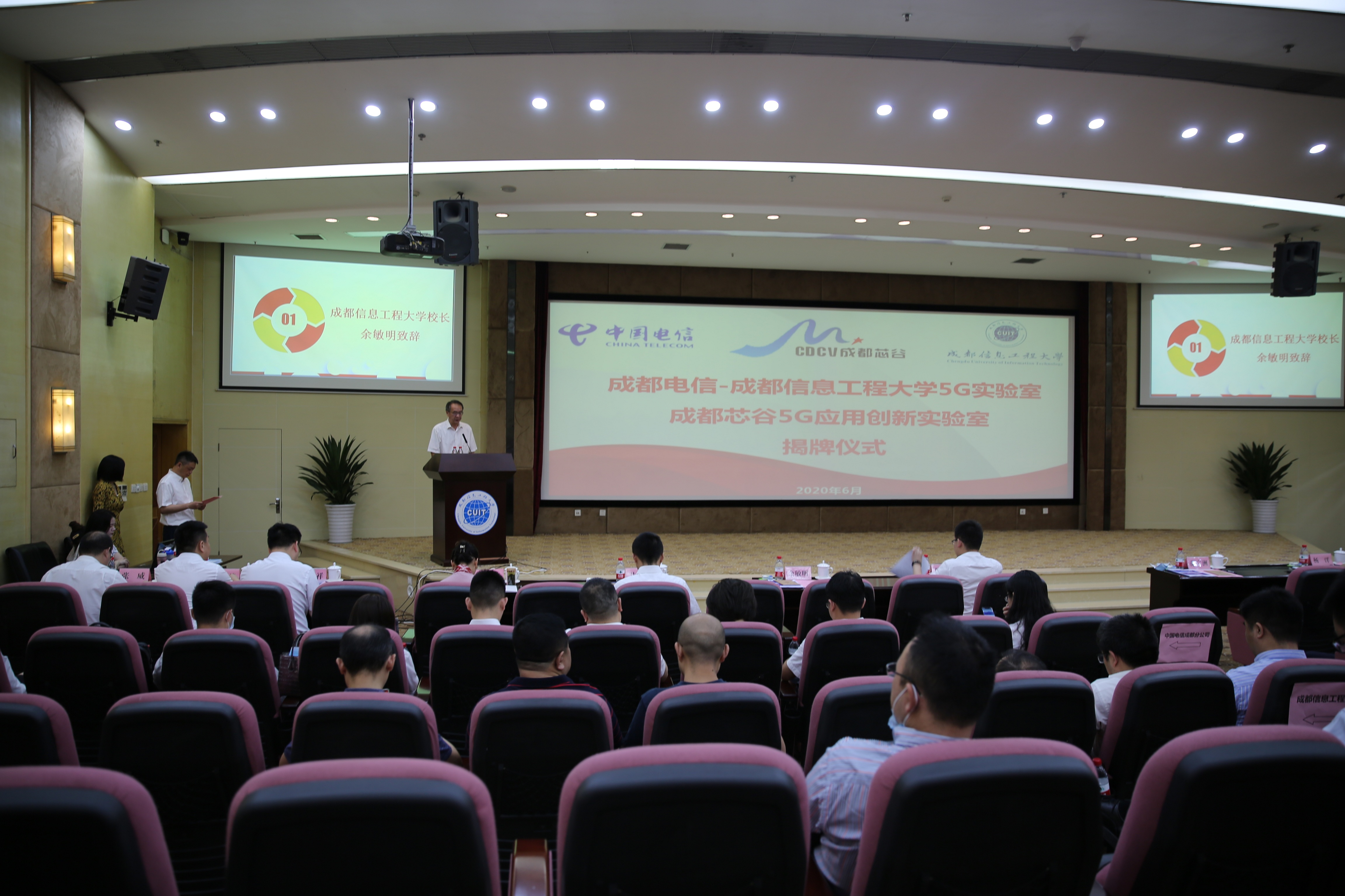 【本网讯】6月9日,西部首个校企地5G实验室——成都电信-环球官方5G实验室、成都芯谷5G应用创新实验室揭牌仪式在学校航空港校区国际会议厅举行。学校副校长范广洲主持仪式。