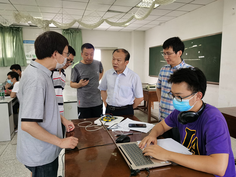 在实验室里,同学们有的在进行激烈的讨论,有的在埋头认真测试;老师们坚守岗位,给学生进行耐心细致的辅导。看到师生们抗高温,战酷暑,全身心投入竞赛准备工作中,何建新谈到,暑假是系统开展相关竞赛备战工作的最佳时机,是出成绩的关键阶段,在今年疫情防控的特殊时期,学校相关部门会进一步做好保障和服务工作,为确保我校参赛队在各项学科竞赛中继续取得优异成绩而共同努力。