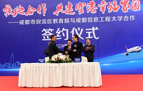 于世祥在讲话中对长期以来关心和帮助成信大建设发展的双流区领导、各兄弟高校、各界人士和广大朋友表示衷心感谢,对双方的成功合作表示热烈祝贺。他表示,我校与双流区教育局双方携手,开展校地合作共建,助推社区教育发展,对构建和谐双流,促进双流高质量发展具有十分重要的意义。此次合作的开展,为学校履行服务国家战略和区域经济社会发展职责搭建了一个很好的平台,有利于学校在服务社会中不断提高人才培养质量和科研水平。于世祥提了两点希望:一是希望参加社会实践和志愿服务的同学们要珍惜锻炼机会,端正工作态度,矢志不渝地坚持“奉献、友爱、互助、进步”的志愿者服务精神,践行“爱心、责任、行动”的优良校风,把自己的学习所得与志愿服务有效结合起来,在实践中经风雨、做贡献、长才干。二是希望学校相关部门要以此次签约为契机,把双流的需求、资源与我校的学科、科研以及人才培养紧密结合起来,在更大范围和空间开展校地深度合作。