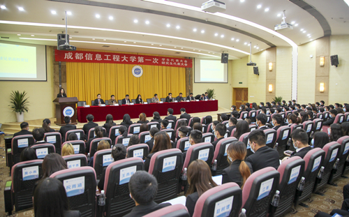 【本网讯】11月21日下午,学校第一次学生代表大会、第一次研究生代表大会在学校航空港校区国际会议厅开幕。学校党委副书记马洪江,党委常委、组织部部长熊建,四川省学生联合会执行主席朱锐同学,成都市学生联合会执行主席王澳同学,学校党委办公室、党委宣传部、党委学生工作部、教务处、研究生处、校团委负责人,以及270名学代会、研代会正式学生代表参加了大会开幕会。