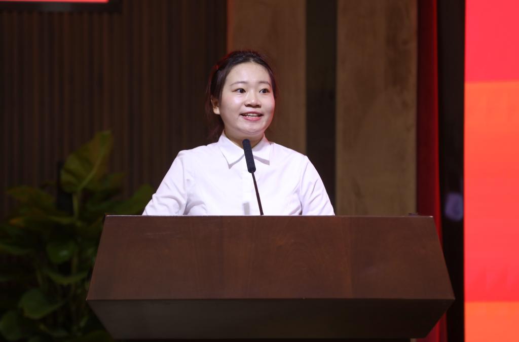 我校统计学院研究生杜思颖作为参赛学生代表发言。她用“感谢”“过程”“收获”三个词分享了参赛的感受与收获。她说,在比赛过程中学会了用统计思维去看待问题、解决问题,比赛给予了参赛选手新思路,将知识与实践结合,把一切复杂的问题简单化,让判断变得有理有据。
