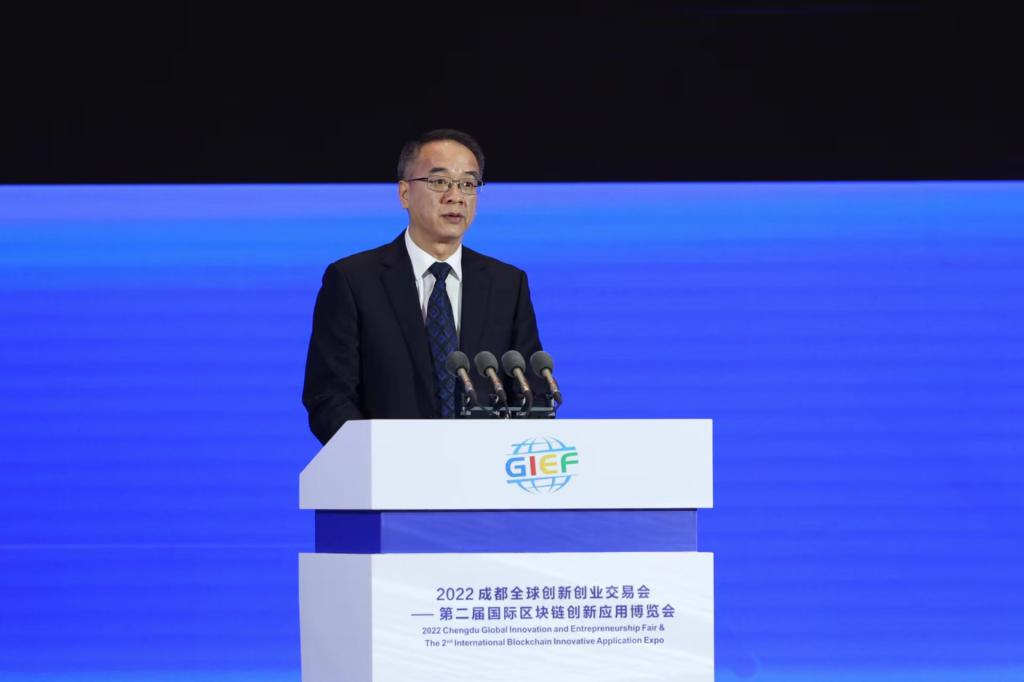 【本网讯】11月21日上午,2022成都全球创新创业交易会——第二届国际区块链创新应用博览会在成都天府国际会议中心隆重开幕,省委常委、市委书记施小琳,省委宣传部副部长、省委网信办主任房方,市委副书记谢瑞武,中国工程院院士、四川大学校长李言荣等领导嘉宾,以及部分协会、机构和企业代表出席开幕式。市委副书记、市长王凤朝出席并致辞。我校校长余敏明受邀出席大会并发言。