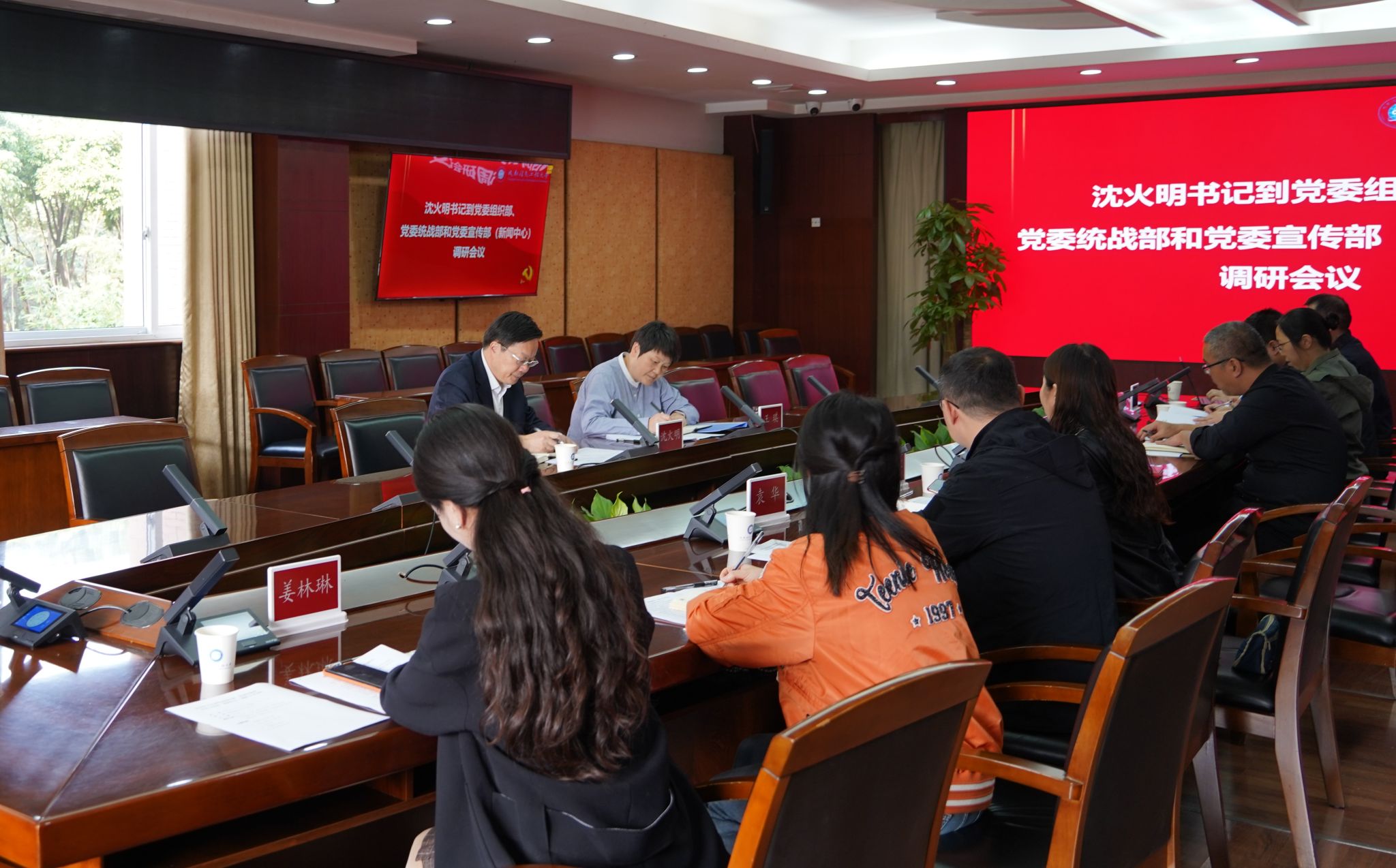 【本网讯】11月9日下午,在航空港校区行政楼第七会议室,学校党委书记沈火明,省纪委监委驻校纪检监察组组长、党委副书记、纪委书记王琪,由党委办公室、校长办公室主任何晋陪同,调研指导并听取学校党委常委、党委组织部、党委统战部部长熊建和党委常委、党委宣传部部长张小红所作的工作汇报。沈火明主持会议。