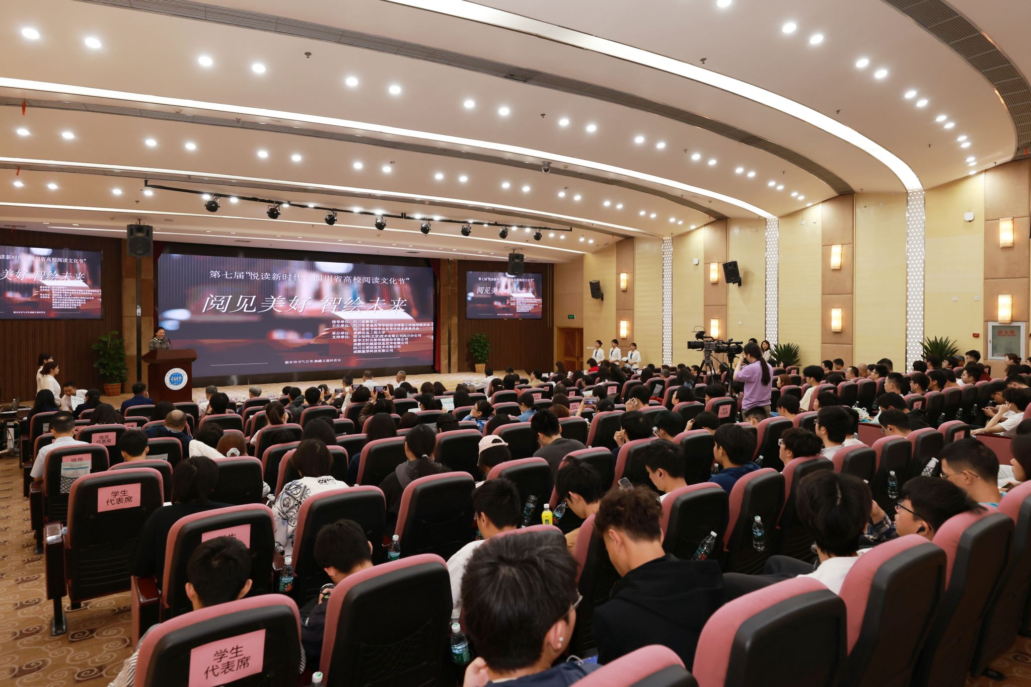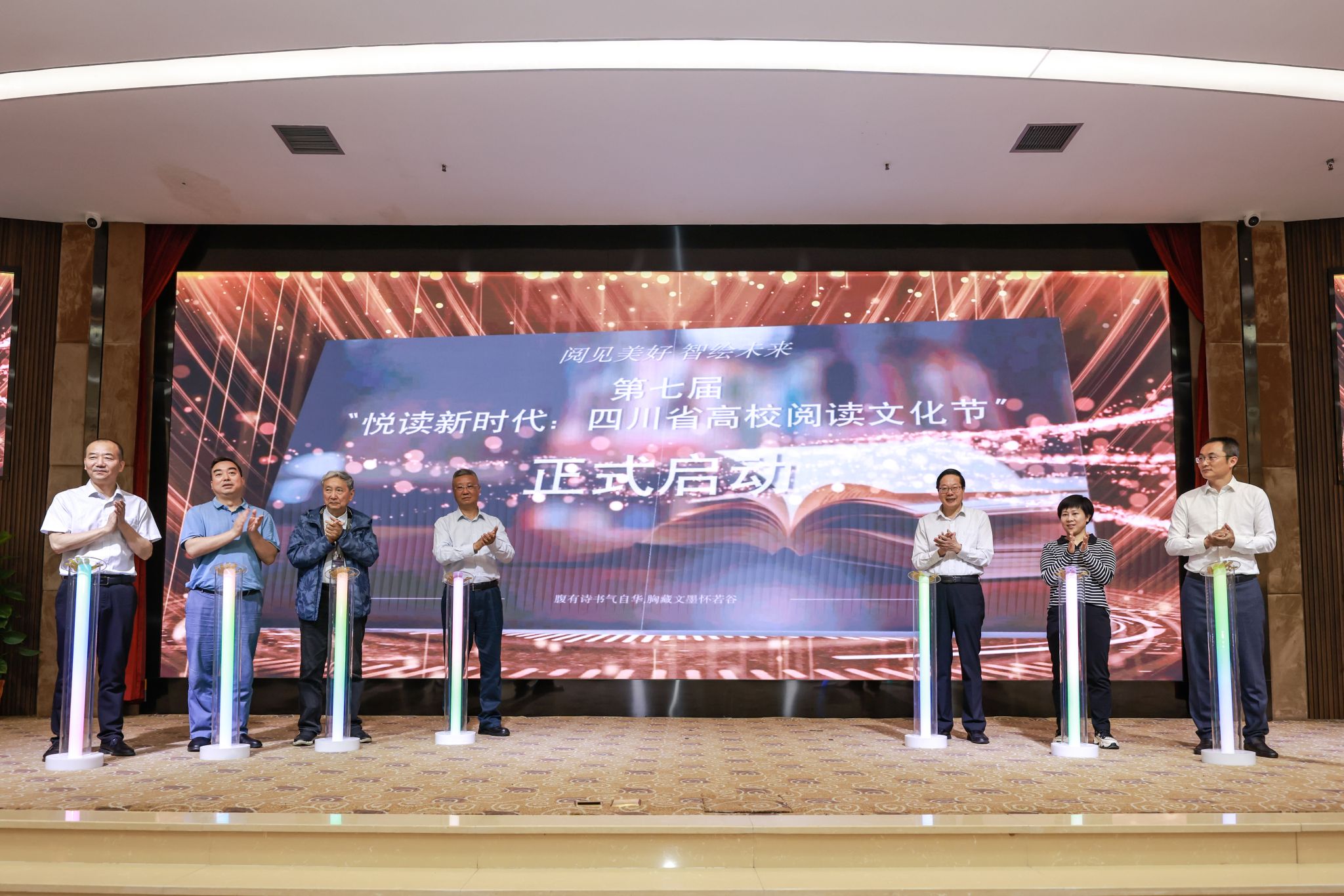 【本网讯】4月19日,为深入学习贯彻党的二十大精神和习近平文化思想,坚持高质量发展理念,以数智技术赋能全民阅读,凝聚高校师生奋进新时代的强大精神力量,为教育强省、文化强省建设不断提供更加充沛的文化滋养,在四川省教育厅的指导下,由四川省普通高等学校图书情报工作指导委员会、四川省图书馆学会高等学校系统委员会主办,环球官方承办的“阅见美好 智绘未来”——第七届“悦读新时代:四川省高校阅读文化节”启动仪式在学校航空港校区盛大举行。韬奋基金会理事长刘伯根,四川省教育厅高教处副处长高波,四川省图书馆党委书记、馆长王龙,四川省社会科学界联合会科普处调研员张晓泓,四川省图书馆学会秘书长赖柯,四川省高等学校图书情报工作指导委员会主任委员兰利琼,特邀专家谭楷,学校党委书记沈火明、副校长朱明出席了会议。