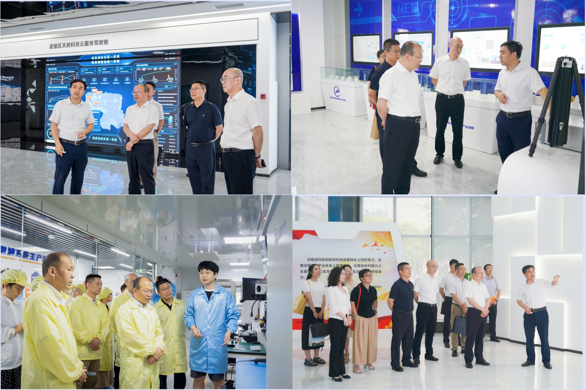 何建新一行参观了武侯区青年创业园,了解青年大学生创新创业服务情况;走访调研了微波射频产业创新服务中心,了解了“搭平台、引伙伴、建圈链、聚产业、创特区”的微波射频产业集群发展目标和产业的发展情况。在成都华日通讯技术股份有限公司、成都远望雷芯电子技术有限公司两家企业走访中,企业负责人围绕企业背景、产品现状、未来发展以及人才需求等方面作了详细介绍。参加调研的领导来到远望雷芯的微装区、电装区,近距离感受企业的研发制造生产线,了解大学生实训培训基地建设情况。