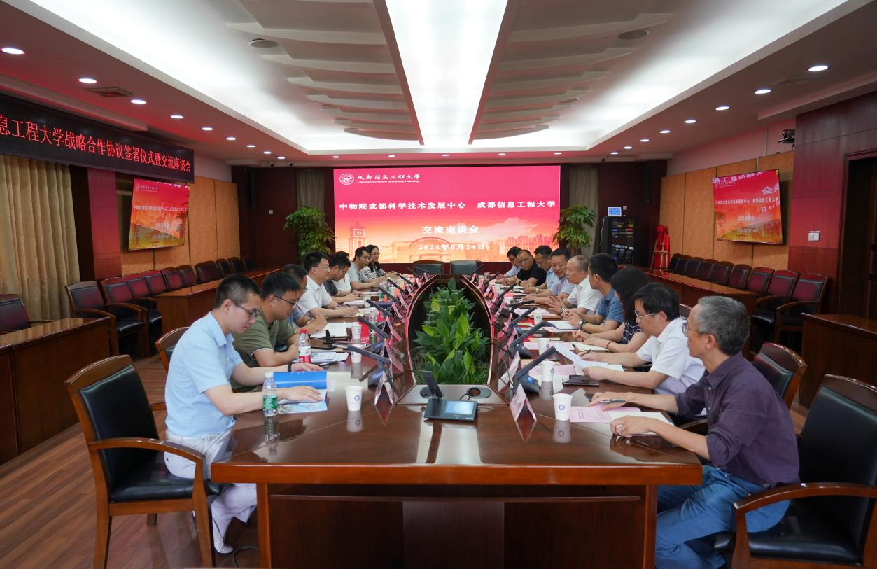 中物院成科中心科技发展处、项目管理中心、大数据中心、传感器与智能装备研究室、能源新材料研究室、数字经济研究室、成果转化与创新体系建设处,我校科技处(大学科技园管委会办公室)、电子工程学院(大气探测学院)、计算机学院、软件工程学院、网络空间安全学院、光电工程学院、统计学院的主要负责人参加交流座谈。