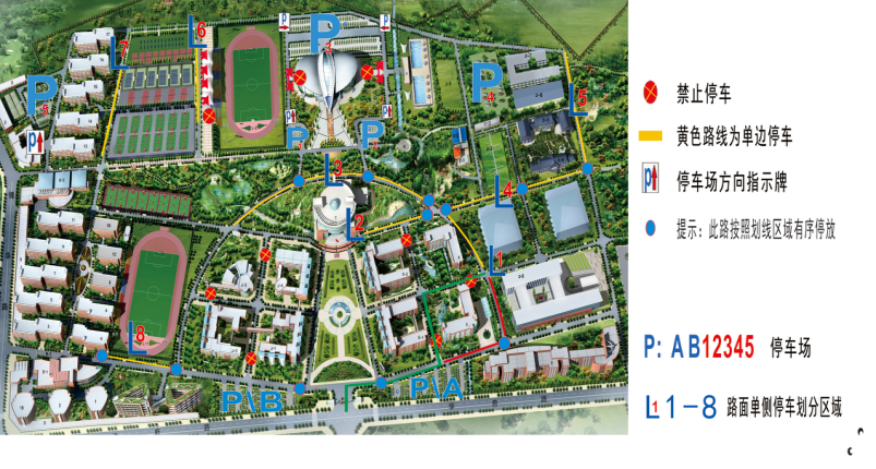 除交通管制区域外,其他校区划线区域、停车场可停放车辆。所有车辆禁止乱停乱放,禁止超速行驶,听从工作人员的现场指挥,请全校师生员工积极配合。违规停放车辆将拖离现场处理。