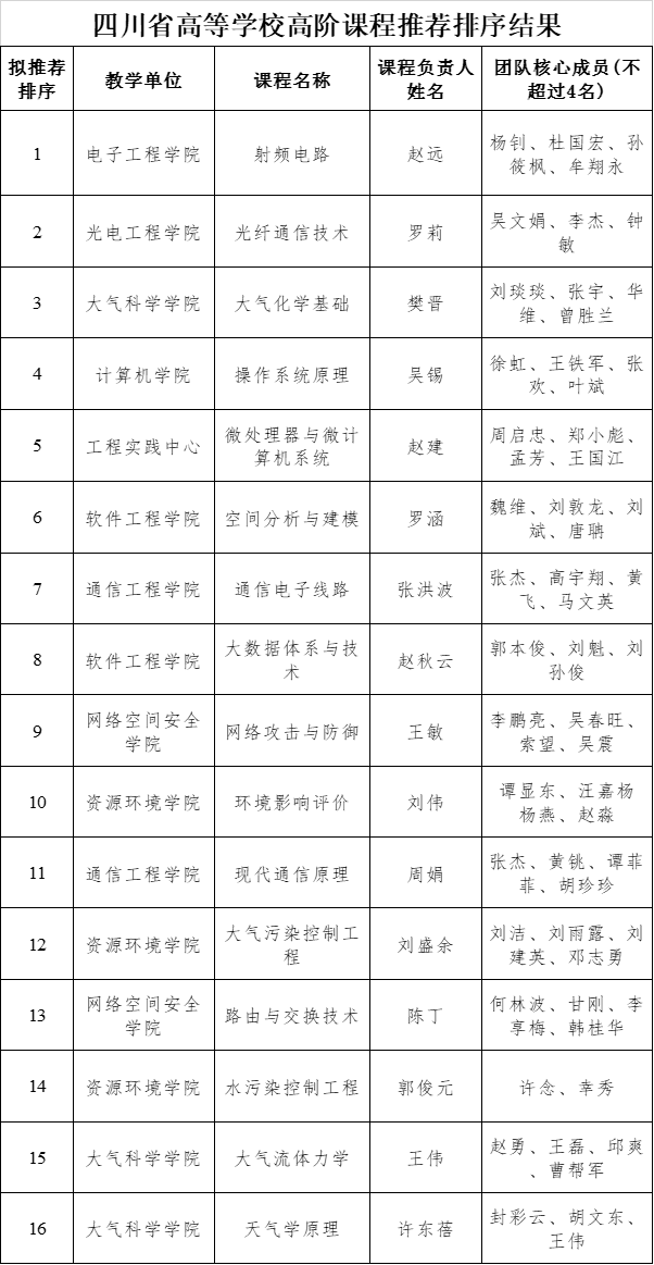 根据《四川省教育厅关于开展四川省普通本科高等学校高阶课程遴选和建设工作的通知》(川教函〔2023〕437号)文件要求,通过各单位推荐及专家评审,现将评审推荐排序结果公示如下表。按照上级文件要求实行限额推荐,学校拟推荐排序为前八名的课程申报四川省普通本科高等学校高阶课程。