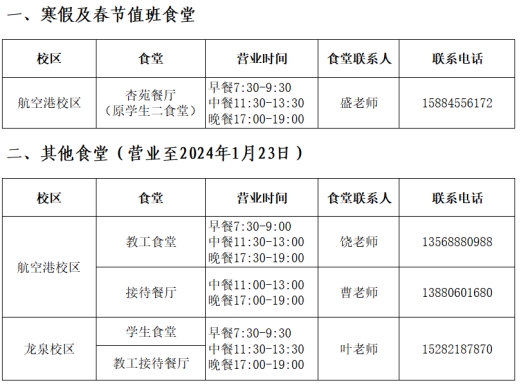 1.航空港校区学生一食堂已于2024年1月17日暂停营业。