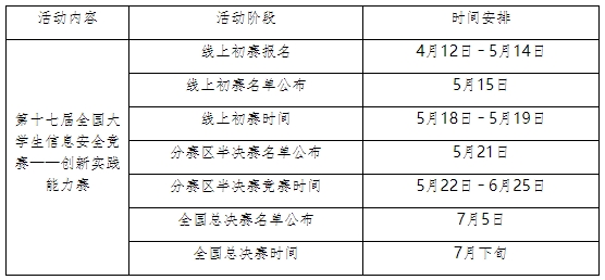关于举办第十七届全国大学生信息安全竞赛-创新实践能力赛的通知