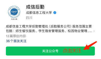 第一步:进入“成信后勤”微信公众号页面,点击电费缴纳-费用查询