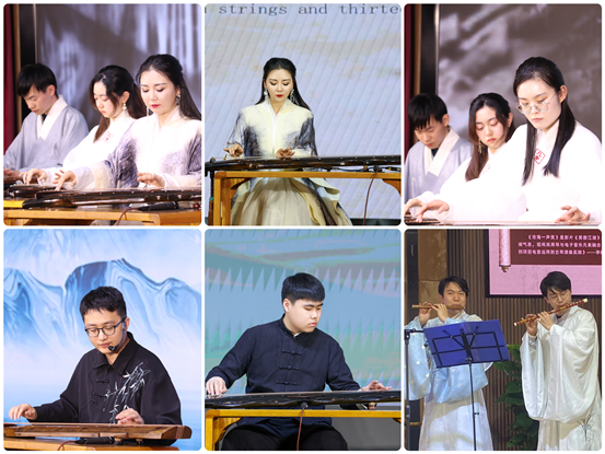 李妮莱及其团队演奏了九首曲目,为大家呈现了一场高雅传统音乐的听觉盛宴,让观众近距离感受到古琴的悠远风韵。演奏家们技艺精湛,对古琴演奏有着深厚的造诣,《酒醉云林》《流水》《沧海一声笑》等传统经典曲目,音色深沉、余音悠远,令人回味无穷。
