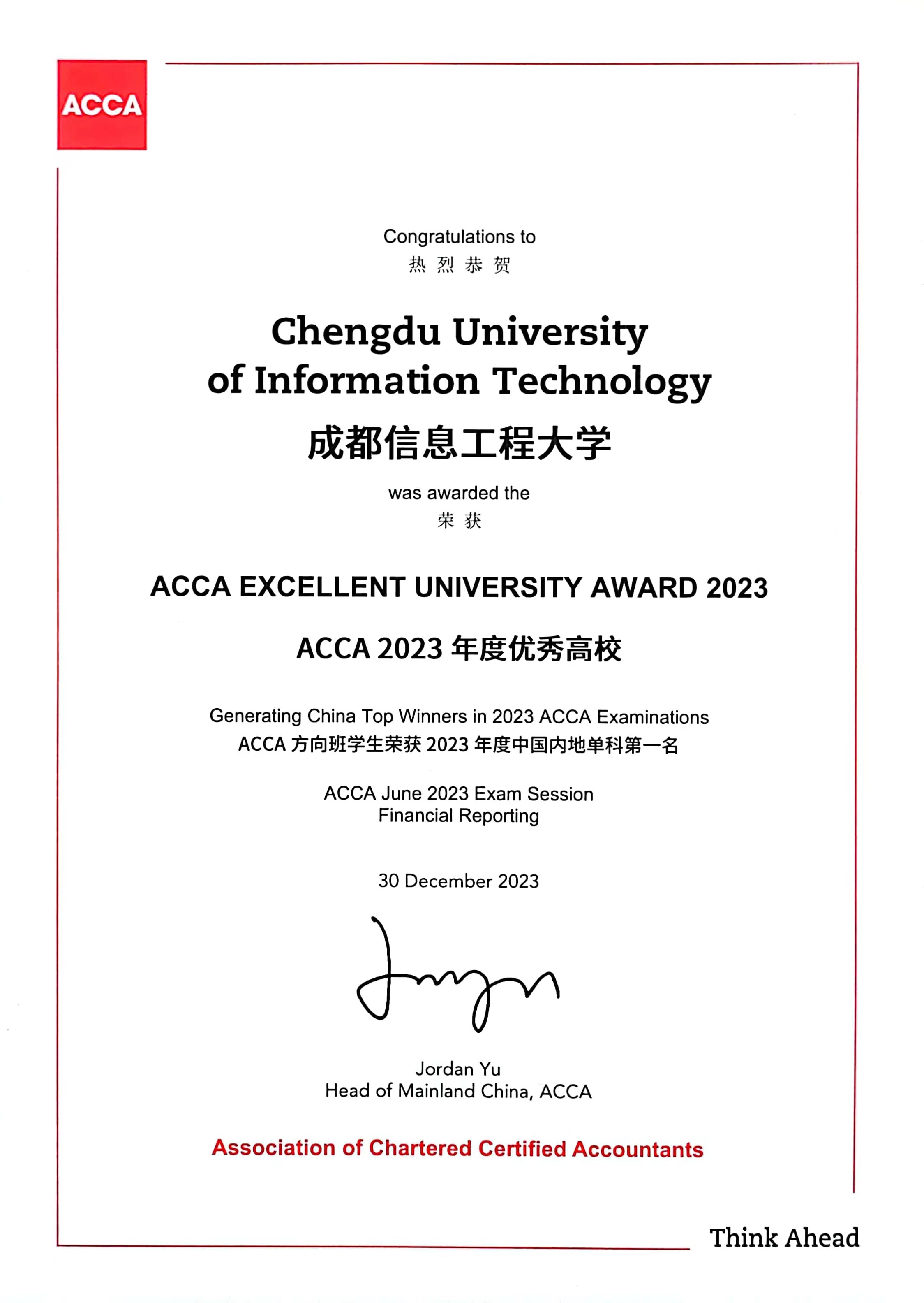 【本网讯】我校在ACCA官方举办的2023年度川渝地区年度优秀高校颁奖仪式上获得“ACCA2023年度优秀高校”荣誉,并列获得该奖项的还有重庆大学和四川大学。