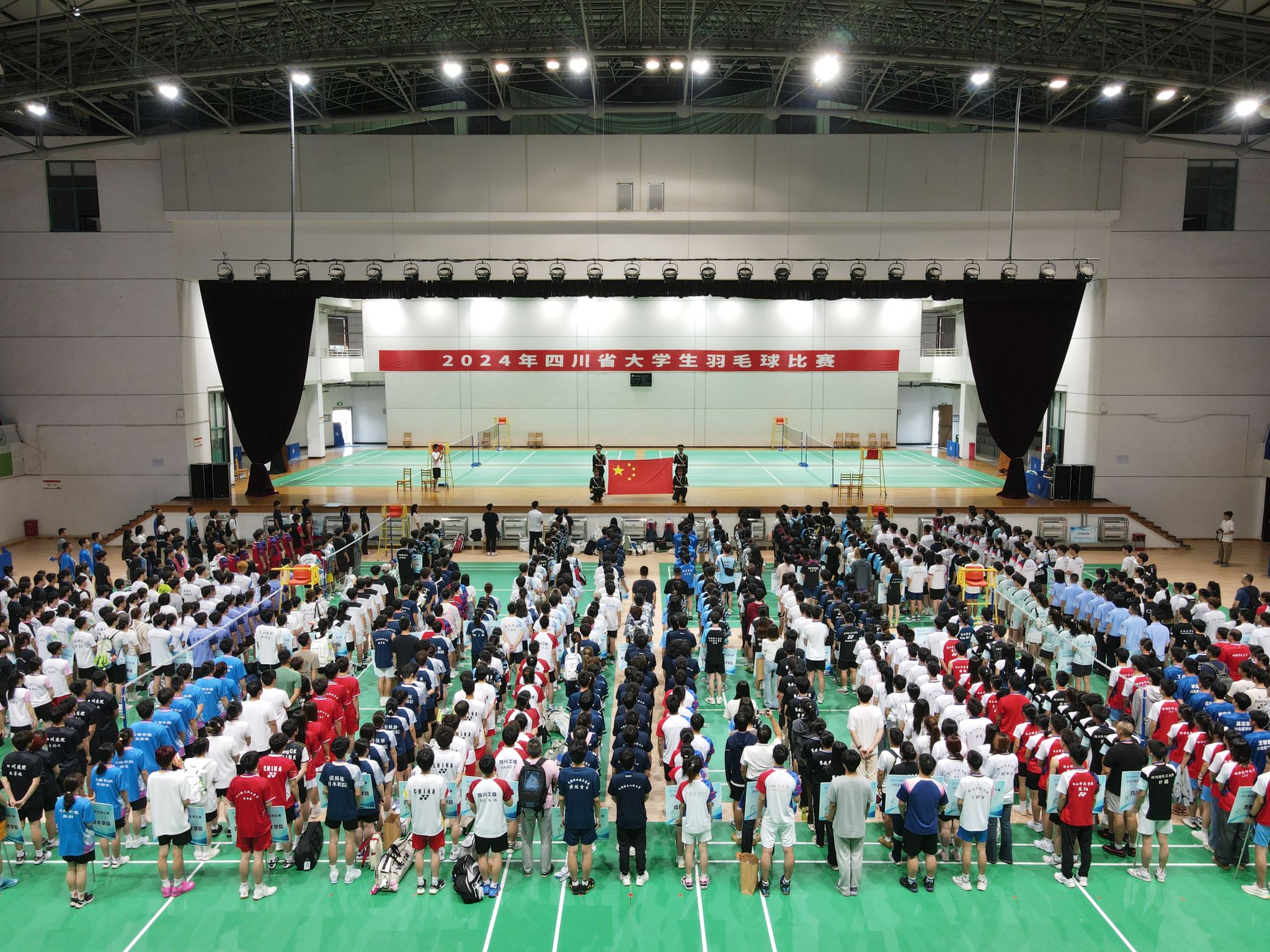 朱明代表学校向出席开幕仪式的领导、嘉宾表示热烈欢迎,向参加比赛的全体运动员、教练员、裁判员表示诚挚问候,向一直以来关心支持学校各项事业发展的同仁表示衷心感谢。他强调,四川省大学生羽毛球比赛是四川省教育厅倾力打造的顶级学生体育赛事,是全省最优秀的青少年运动员挥洒青春、顽强拼搏、永攀高峰的舞台,也是建设体育强省的重要载体。学校将以最高标准做好赛事各项服务保障工作,把本次大赛办成高水准、高质量的羽毛球竞技和精神文化双丰收的盛会,为推进高校体育事业的健康发展贡献成信力量。