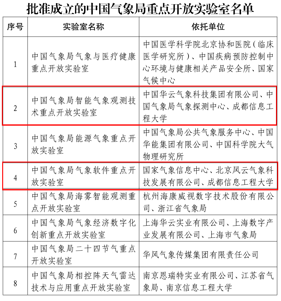 批准成立的中国气象局重点开放实验室名单