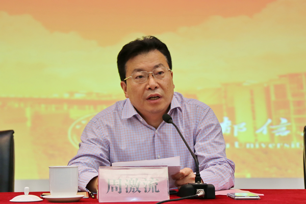 周激流在发言中感谢省委省政府的培养、关怀和信任,感谢全校干部师生的支持。他说,学校在66年的办学历程中形成了鲜明的办学特色,培养了大批优秀人才,在服务国家气象事业、信息产业、统计及国防现代化事业等国家战略以及区域经济社会发展中发挥了重要的作用。他表示,在今后的工作中,一定牢记使命,履职尽责,积极凝聚各方面的力量,把好方向、谋好大局、抓好大事、带好队伍、用好人才。他将带领学校班子成员和各级领导干部,将省委省政府对学校发展的新要求落实到学校的各项工作中,共同谱写建设开放的特色鲜明的高水平信息工程大学的新篇章。
