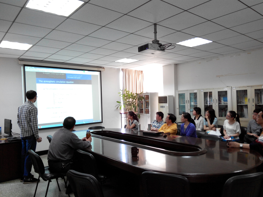 【本网讯】4月17日下午,应应用数学学院邀请,四川大学王佛生博士在行政楼421室举行了一场题为《Atmosphere Circulation Equations Influenced by the temperature》的学术报告。报告会由学院院长杨光崇教授主持。部分老师及研究生参加了本次学术报告会。