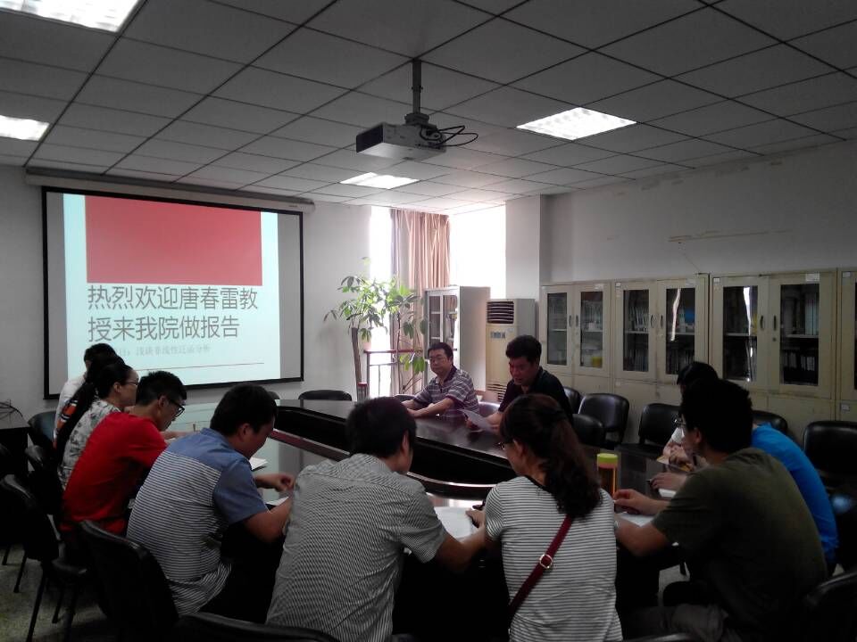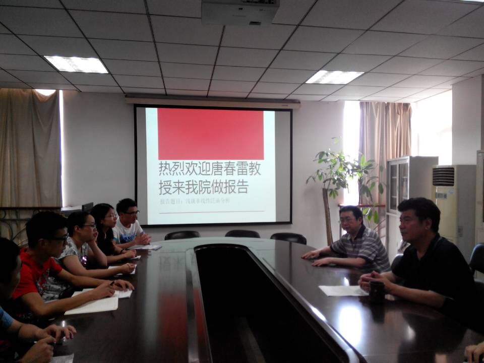 唐春雷教授围绕“非线性泛函分析”这个话题,从分析定义、数学结构、泛函分析的研究方向及理论等方面作了系统的、较深入的分析和讲解。他说,泛函分析是一门具有高度的抽象性和广泛的应用性的学科,各位研究生同学们在研究非线性泛函分析时,要充分发挥自己的想象力,并与客观实际相联系,这样才能不断进步。同时,唐教授就学术研究中存在的一些问题与大家进行了热烈的讨论和互动。唐教授渊博的数学理论知识和高尚的学术品格深深吸引了在场的师生们,给大家留下了深刻的印象。