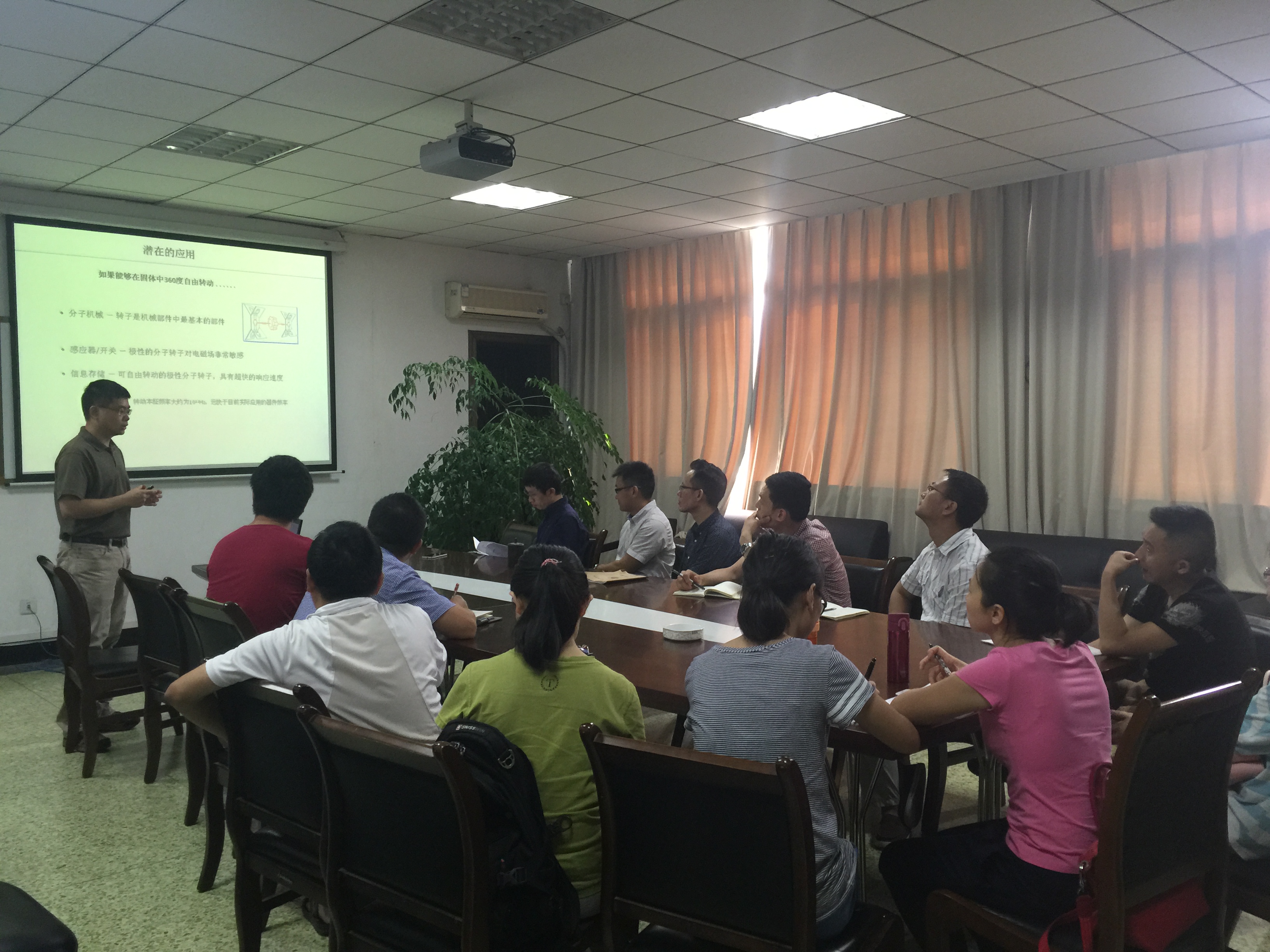 赵可从微观角度介绍了分子转子的基本概念及其分子转子阵列在灵敏传感器、光电感应器件以及新一代信息存储介质等领域的应用前景。他重点阐述了基于主客体(HOST-GUEST)结构的二维和三维分子转子系统的实验设计与制备方法、转子转动势垒及其介电特性,同时也分析了目前分子转子阵列系统目前面临的困难及其可能的解决思路。