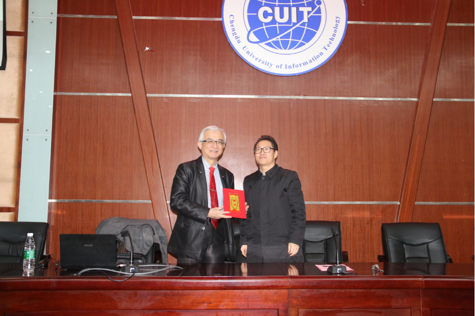 谢邦昌教授为我校客座教授,讲座开始前,于世祥向谢邦昌颁发了环球官方客座教授续聘聘书。
