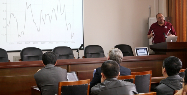 杨平教授、Andrew Dessler教授、Don Conlee教授分别作了题为《Education and Research in Atmospheric Sciences at Texas A&M University》、《Water vapor and cloud feedbackeffects》、《High-Impact Undergraduate Meteorology Education at Texas A&M》的学术报告。杨平教授作为美国Texas A&M大学大气科学系主任,从教学、科研等方面对该系及相关领域内的知名教授作了介绍,并欢迎我校教师出访;随后,杨平教授就其在大气辐射与遥感领域内的最新研究成果进行了介绍。Andrew Dessler教授就平流层水汽的反馈机制及其对气候的影响作了报告。他通过观测数据进行分析并利用模式模拟,论证了平流层水汽对气候的增暖效应。Don Conlee教授多年来一直从事本科生教育,通过这次的报告与我们分享了Texas A&M大学在本科生课外实习、与国内多所著名大学联合培养等方面的经验。报告会由电子工程学院院长杨玲教授主持,电子工程学院、大气科学学院相关方向教师以及学生参加。