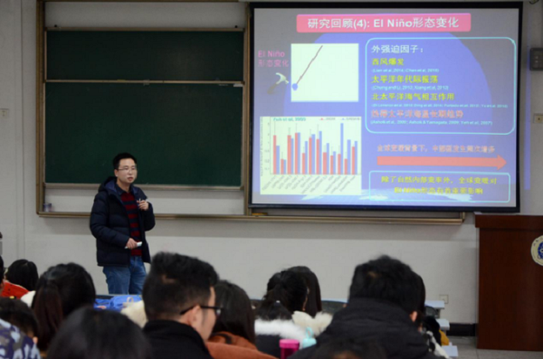 【本网讯】12月30日下午,大气科学学院在1301教室举办了第十六期研究生论坛。大气科学学院博士李明刚、李扬,14级研究生李蓉,兰州大学研究生焦腾腾、陈婕、李佳瑞受邀作学术报告,学院部分老师及研究生参加了此次论坛。