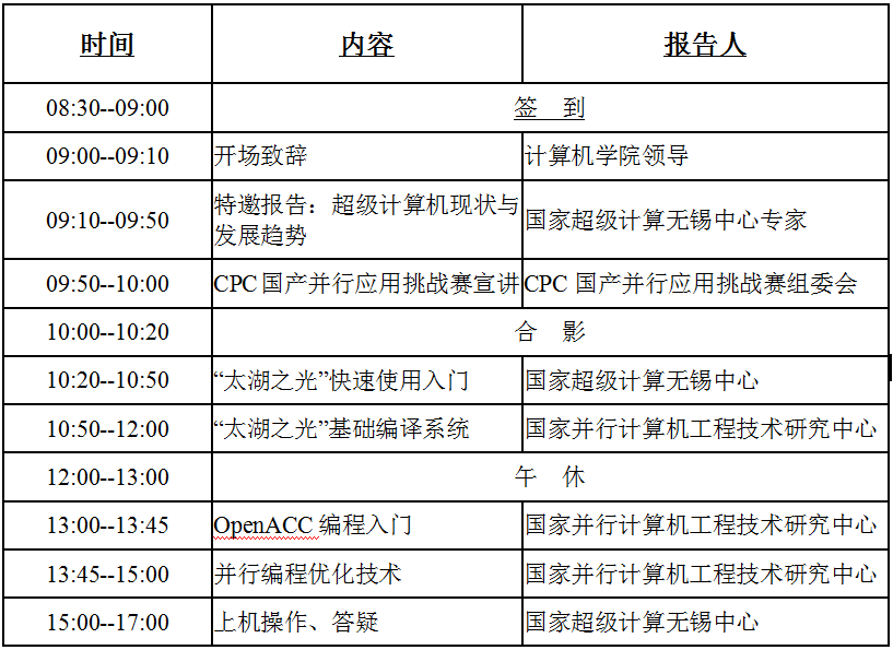 【本网讯】由教育部高等学校计算机类专业教学指导委员会指导、中国计算机学会主办的第一届国产CPU并行应用挑战赛(CPC)即将开赛。2017年6月19日,由计算机学院承办的西部赛区启用仪式将在环球官方信息楼第一会议室召开,届时将由国家超级计算无锡中心与国家并行计算机工程技术研究中心专家为大家带来题为“超级计算机现状与发展趋势”的报告。为了方便参赛队员更好地了解比赛规则,提前熟悉比赛平台,计算机学院特别邀请CPC组委会在我校6309教室为所有参赛队员及指导老师进行一次备赛培训,请已经报名参赛和意向报名参赛的同学和指导老师准时参加,欢迎全校师生踊跃报名参加。