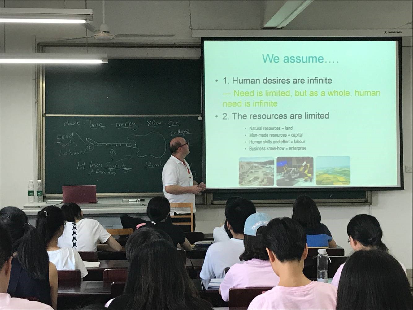 统计学院邀请了加拿大Simon Fraser大学的Chad博士为学院40名同学进行授课。Chad博士表示,他非常珍惜此次来中国跟同学们交流的机会,也在努力学习汉语。在三天的交流当中,他用生动的实例,从市场结构、经济供需、市场价格系统等方面,向同学讲授了国际经济运行环境及体系。Chad博士语言幽默风趣,举例生动,深受同学们欢迎。