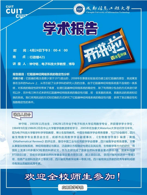 上一条:【学术预告】Invariant Manifolds with/without Spectral Gap