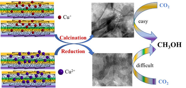 近年来,温室气体CO2减排、资源化利用备受全球关注。尤其以CO2催化加氢生产重要的化工原料与清洁燃料甲醇已成为该领域的研究热点,但其距离实际应用还有一定距离。该成果着眼于传统甲醇催化剂体系,开辟新型制备方法与工艺,以降低催化活性中心与载体之间强相互作用、充分发挥催化剂体系半导体材料ZnO电子传递性能、利用催化剂孔隙的择形选择性,使Cu-基催化剂中的活性中心金属Cu晶体活化H2的能力得以大大提高,从而提高了CO2转化及目标产物甲醇的选择性。所报道的成果对发展通过“甲醇经济”、循环利用碳资源具有重要借鉴意义与学术价值。