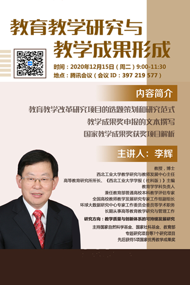 本次讲座特邀西北工业大学教学研究与教师发展中心主任李辉教授,针对教育教学研究与教学成果形成相关内容进行讲解。李辉详细阐述了教育教学改革研究项目的选题策划和研究范式,指导参培教师们如何进行教学成果奖申报的文本撰写以及结合国家教学成果获奖项目讲授了教学成果的切入视角、成果申请书的撰写技巧和支撑材料的选用等。