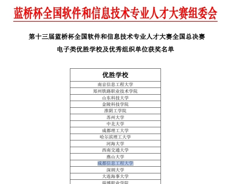 我校在第十三届蓝桥杯全国软件和信息技术专业人才大赛个人赛(电子类)全国总决赛中取得优异成绩