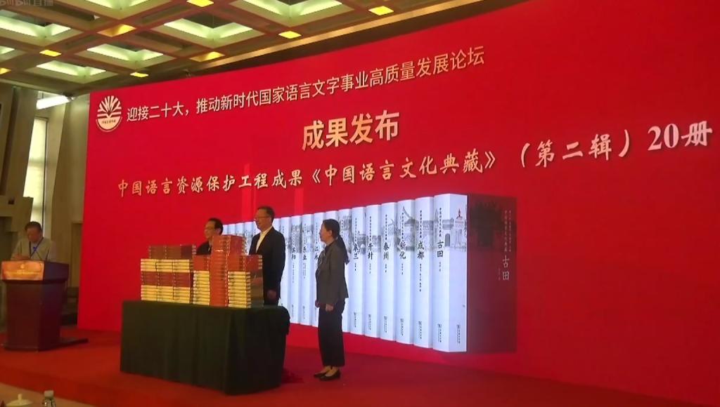 《中国语言文化典藏》系列丛书是教育部、国家语委重大语言文化工程“中国语言资源保护工程”的标志性成果,获得国家出版基金项目资助,计划出版50册,前20册已于2017年出版。为迎接党的二十大胜利召开,2022年9月,《中国语言文化典藏》系列丛书继续推出20册,包括15册汉语方言文化和5册少数民族语言文化。