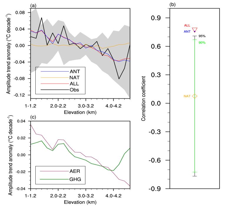 大气科学学院朱丽华博士发表地学一区Top期刊论文报道人类活动对青藏高原气温年循环振幅海拔依赖型减弱的影响