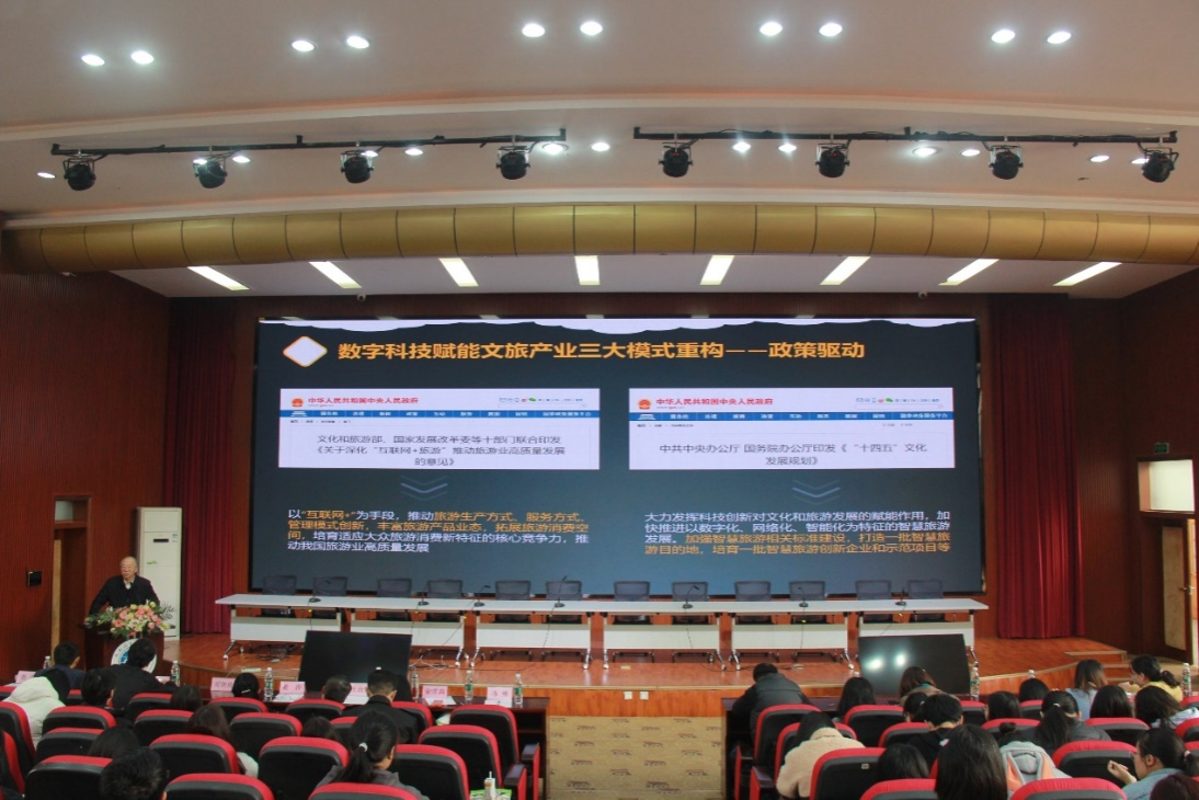 【本网讯】11月23日,国家教学名师、教育部高校旅游管理类教学指导委员会副主任、教育部旅游管理国家虚拟教研室主任兼首席教授,中国旅游研究院生态旅游研究基地主任、中国文旅大数据研究院院长、湖北大学旅游发展研究院院长马勇教授应邀来我校为管理学院的老师和学生开展讲座,主题为“数字技术赋能文旅产业发展”。讲座由管理学院院长宋雪茜教授主持。