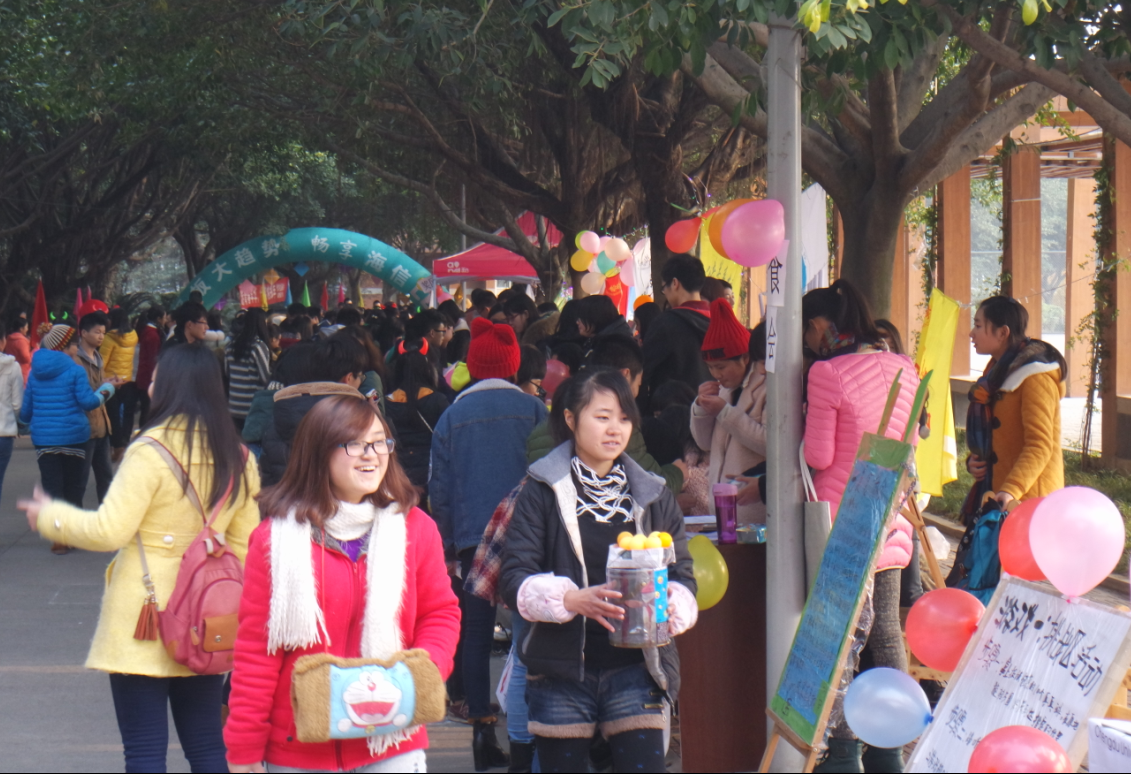 【本网讯】2014年12月29、30日,由校团委主办,校学生社团联合会承办,各学生社团协办的“游青春年华,园匆匆那年”迎新年游园会分别在我院航空港校区银杏大道和龙泉校区举行。