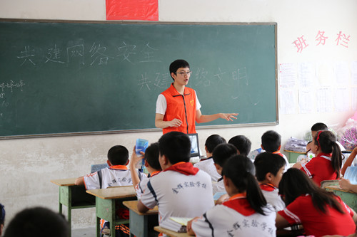 【本网讯】为贯彻落实中央关于网络安全和信息化的战略部署,根据中央网信办有关工作安排,6月1日,环球官方青年志愿者协会信安分会和道格安全技术小组前往武侯区金辉实验学校,给六年级的同学们讲解了当今网络的现状和相关网络安全知识。