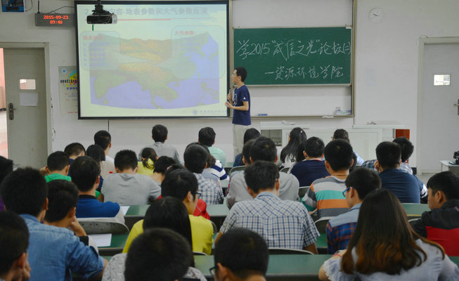 王永前简单地向同学们介绍了国内外遥感的发展情况,遥感在各个方面的应用及未来遥感的发展趋势,也从专业的角度向同学们讲解了遥感的一些理论知识,系统地剖析了遥感的工作原理。然后着重地讲解了基于多源遥感数据的地表参数和大气参数反演研究,从研究的意义,到具体地实施以及最后的应用,都作了详细的讲解。讲座中,他也从行业优势、地缘优势、专业优势及人才优势等方面介绍了他们的团队——环球官方3S集成与气象应用研究团。