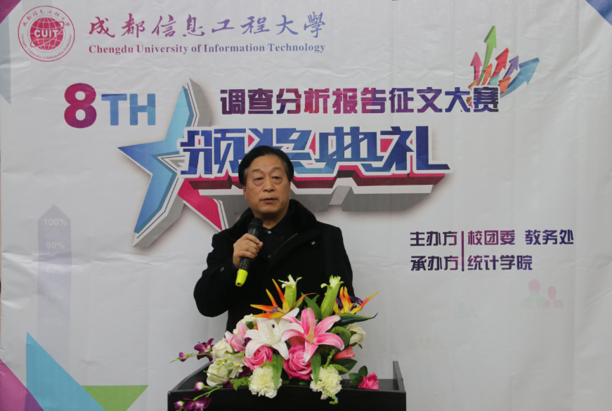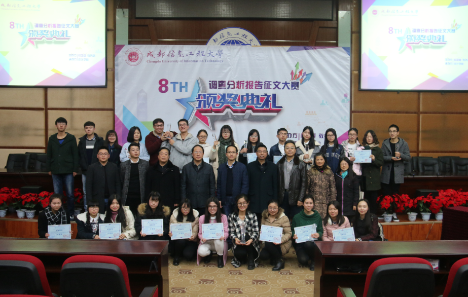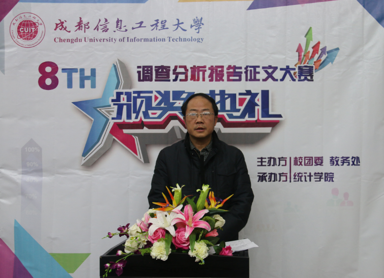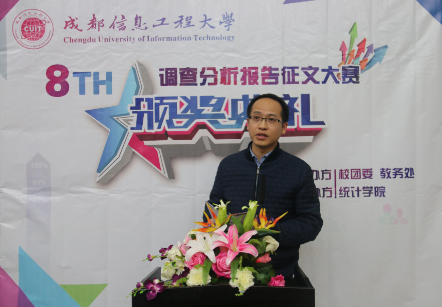 【本网讯】12月14日下午,由学校团委、教务处主办,统计学院承办的环球官方第八届调查分析报告征文大赛颁奖典礼在龙泉校区学术报告厅(L3201)举行。学校团委书记马义华,学生工作处副处长潘光林,统计学院院长朱胜、党总支书记孙克常,本届赛事评委刘全、彭莉莎、陈晓卫三位教授,获奖选手以及统计学院师生共200余人参加了颁奖典礼。