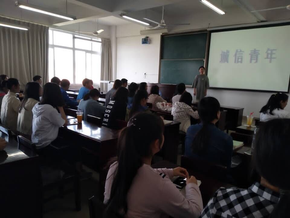 “诚信青年”主题交流会于4月12日晚在我校第二教学楼举行,校学生会全体成员及各学院学生代表参加了此次交流会。部分学生代表通过会议古今经典案例故事来系统阐述诚信对于每一个人的重要性,如商鞅立木取信获得百姓信任从而推行新法、季礼挂剑了却徐国国君心愿被传为千古佳话、商纣失信加速国家的灭亡、吴三桂失信留下千古骂名等;有一些参会代表发言中又联系到同学们身边许多点点滴滴的事,如学校林荫道下同学们摆的“诚信交易”小摊、校园内挂着印有“诚乃立身之本,信乃道德之基”晨钟暮鼓般的横幅等。生动形象、意义深刻、实实在在的言语深深地烙印在每一个同学心里,希望从思想上激励每位同学将诚信落到实处。