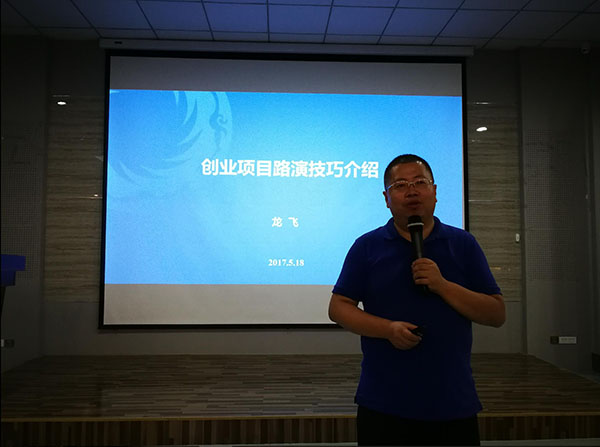 开幕式上,龙飞作题为《创业项目路演技巧介绍》的主题讲座,分享自己在往届大赛中的指导和评审经验,传递商业思路,并通过对商业计划书的重点、亮点做细致解读,帮助参赛团队更好地参与每一个环节,并希望各参赛队通过训练营进一步提升自身竞赛水平。严支援在会上分享了本人的创业经历,并勉励大家要找准目标方向,搭建合适团队,合理调配资源,努力实现自己的梦想。