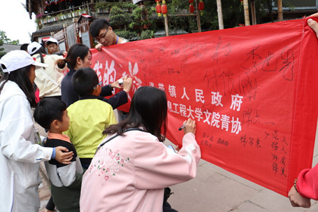 【本网讯】10月21日,我校文化艺术学院青年志愿者协会与成都市龙泉驿区洛带镇人民政府联合举办的环保感召活动在洛带古镇成功举行。为响应国家政策号召,绿水青山就是金山银山,将建设“绿色中国美丽中国”落地落实,我院青年志愿者者协会前往洛带古镇,为环保工作做出响亮的号召。