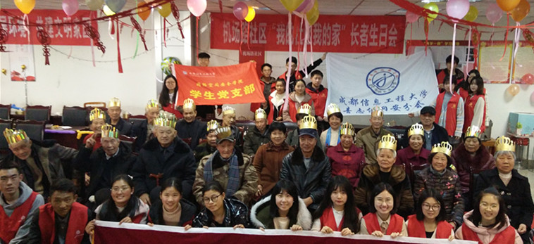 【本网讯】为进一步弘扬雷锋精神,弘扬中华民族爱老尊老的传统美德,倡导社会文明新风,3月5日,网络空间安全学院学生党支部组织了学生党员代表10余人来到了航空港机场路社区党群服务中心,开展以“不忘初心讲奉献 学习雷锋扬美德”为主题的志愿者活动,协助社区干部一起为机场路社区的老人们过“长者生日会”。