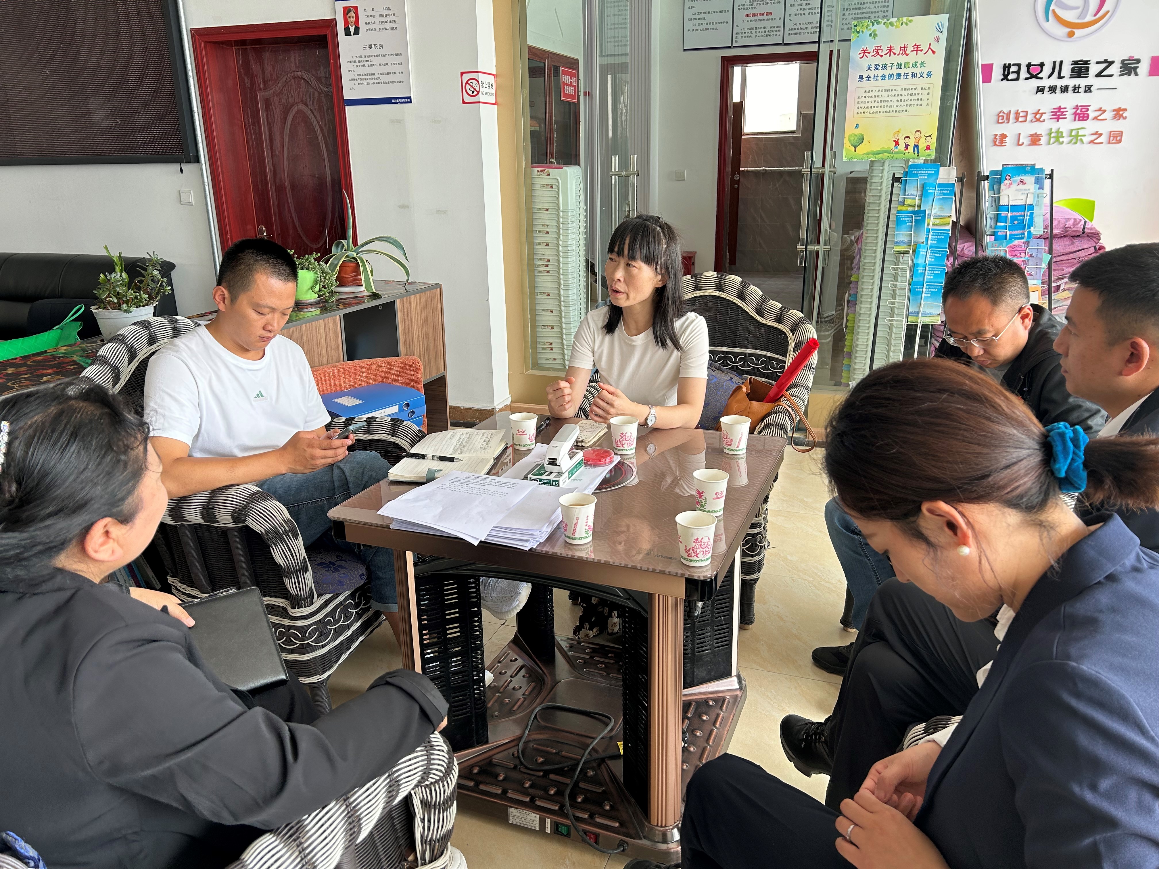 8月29日下午,伍娟副教授与阿坝县委社会工作部扎西副部长、阿秋副部长一行考察了阿坝县第一社区的建设情况。伍娟副教授分别和当地镇长、社区书记进行谈话交流,了解当地社区建设情况,根据实地考察情况和当地民族文化给出了相关建设建议,并就下一步工作做了详细交流。